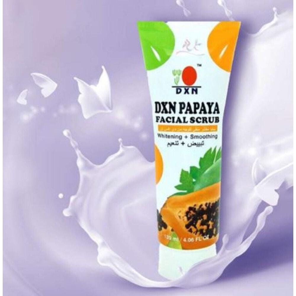 مقشر البابايا من DXN هو منتج طبيعي لتقشير الوجه، يحتوي على مستخلص البابايا مع حبيبات جوز البقان والذرة،